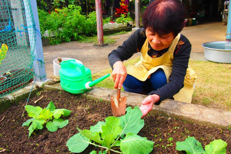 畑まで歩いて⾏って
